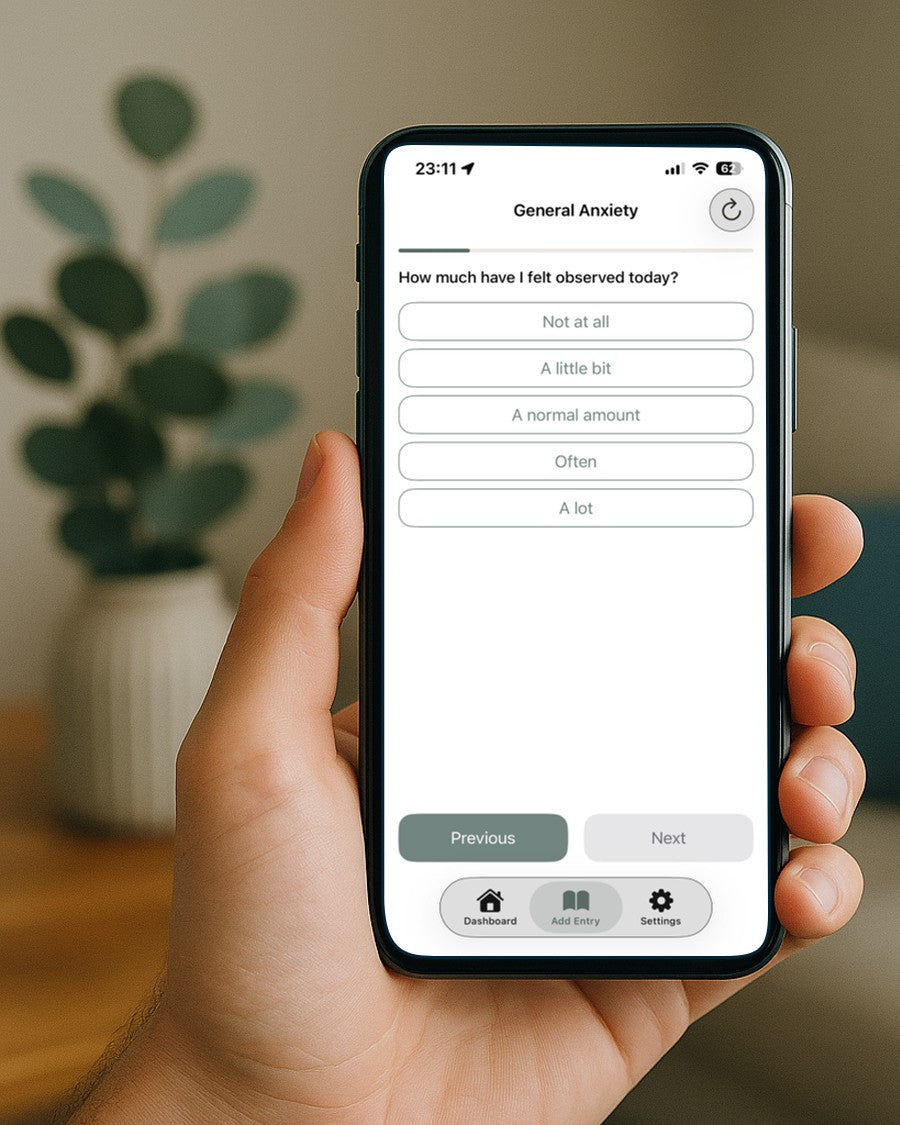 Encrypted digital diary designed to support ongoing psychotherapy, so sessions can focus less on reconstructing the week, and more on clinical work.